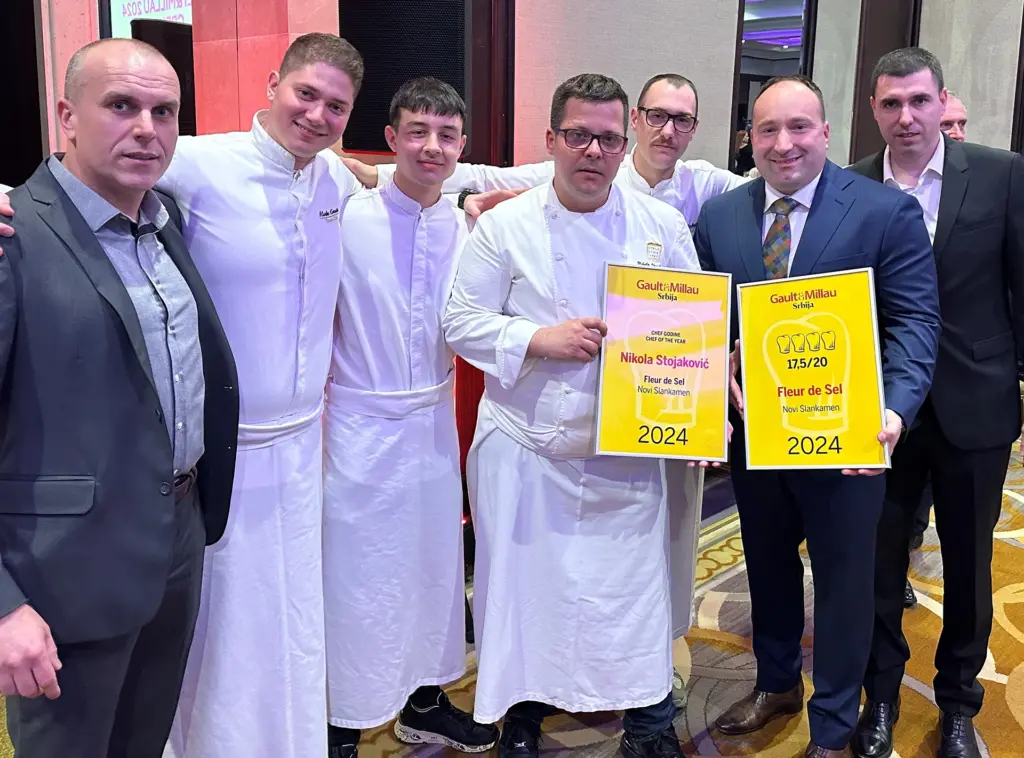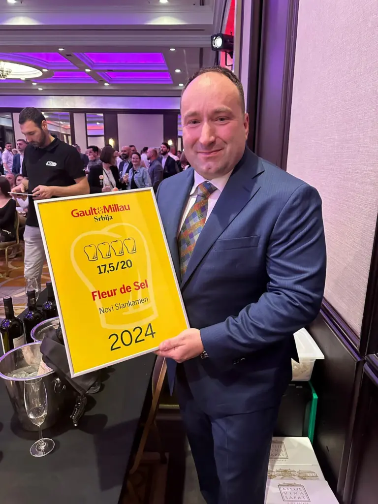 Restoran Fleur de Sel najbolje je ocenjen restoran u Srbiji i dobitnik je nagrade četiri „kuvarske kape“, dok je naš šef kuhinje Nikola Stojaković proglašen za šefa godine od strane uglednog gatronomskog vodiča „Gault & Millau“. Izdanje „Gault & Millau“ predstavlja vodič kroz izuzetnu kulinarsku ponudu Srbije, a „kape“ su dodeljivane u različitim kategorijama i one ističu vanredne talente i vrhunske restorane u domenu gastronomije.